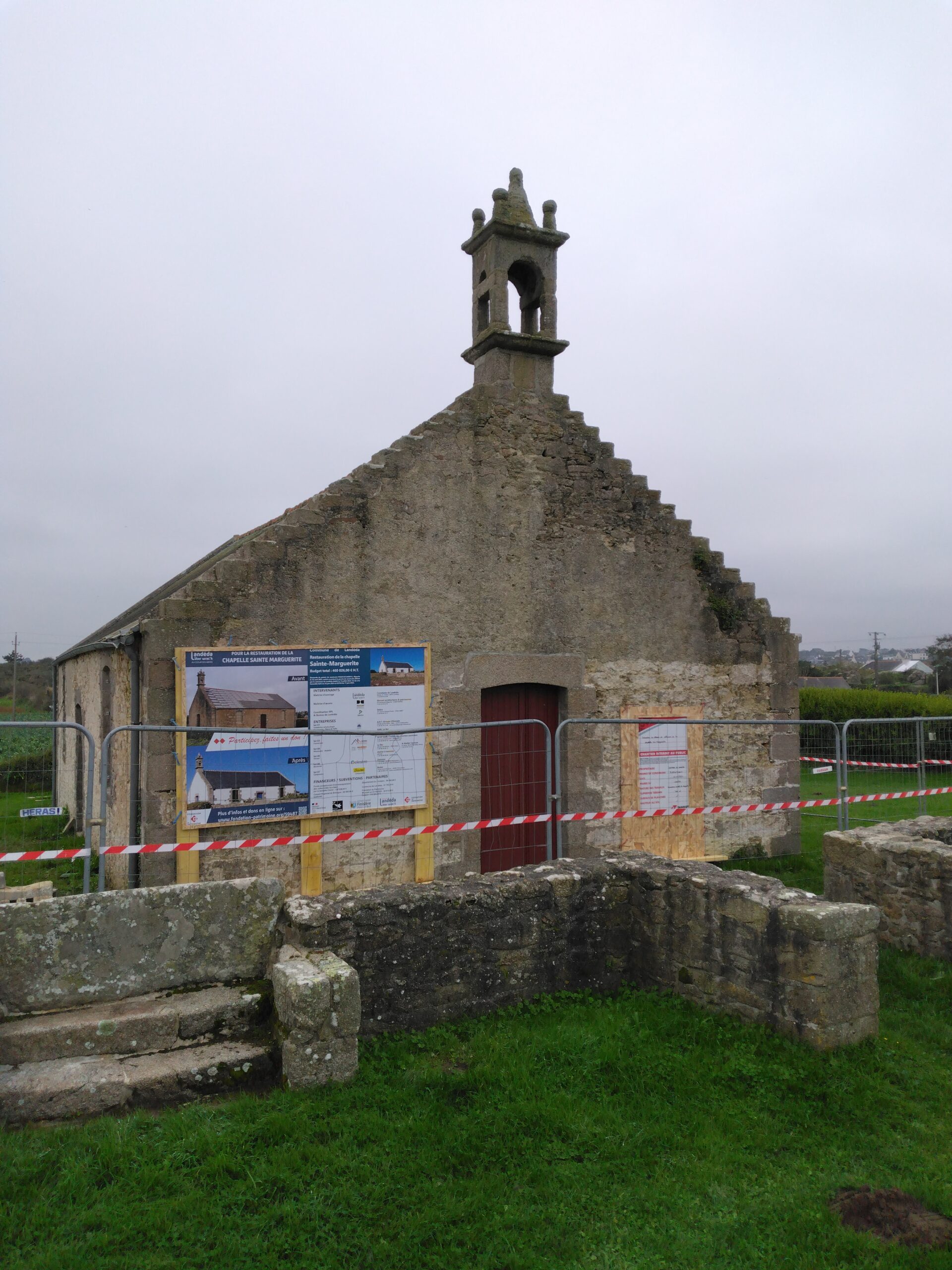 Construite sous l’influence de la mer, la Chapelle de Sainte-Marguerite fait partie intégrante, tant du label « Port d’intérêt patrimonial » que de l’inventaire régional sur le patrimoine des ports de Bretagne. Sollicitée par un climat maritime capricieux, elle a subi de nombreuses dégradations depuis sa première rénovation dans les années 1960. On note des murs détériorés par des remontées capillaires dû à la présence de ciment dans la dalle et les enduits, une couverture dont l’épaisseur des ardoises est insuffisante par rapport au caractère maritime et son exposition au vent. La tempête Ciaran a accentué les détériorations en créant une entrée d’eau avec l’envol d’un quart de la toiture : salpêtre, rouille, insectes et champignons lignivores se sont ainsi développés.