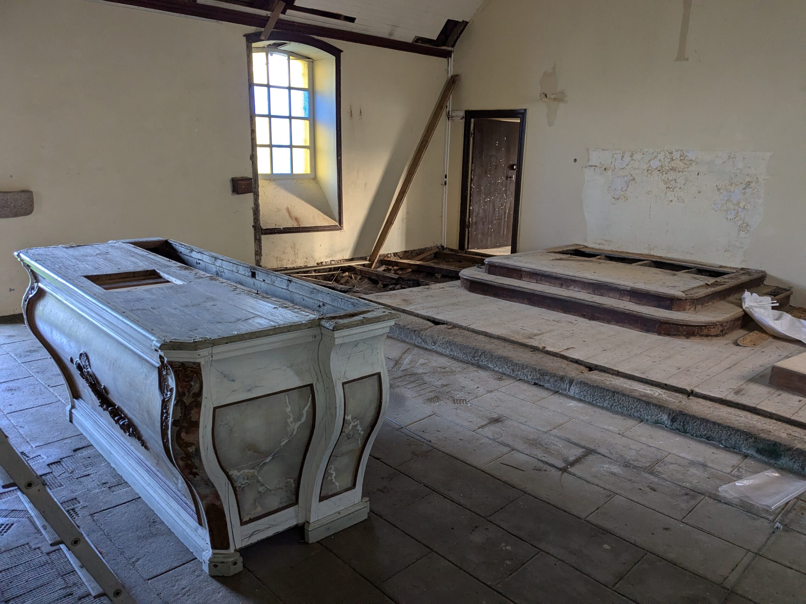 Avant le démarrage des travaux, le maître autel et les statues ont été retirées de la chapelle, en attendant leur restauration prévue en 2026 à date.